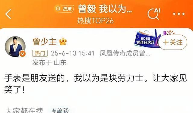 结语 在娱乐圈这个鱼龙混杂的地方,一定要时刻注意自己的言行举止。 有可能你的一举一动都会被放大,从而酿成无法挽回的后果。 信源来源:红星新闻2025-12-17手表风波半年后,曾毅晒凤凰传奇“全家福”